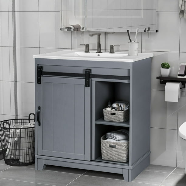 Eclife 36 bathroom vanity sink combo grey w/side cabinet vanity white square ceramic vessel sink and chrome bathroom solid brass faucet and pop up drain, w/mirror (a07b02gyb11gy) 4.1 out of 5 stars. Eclife 24 classical bathroom vanity vessel sink set with oil rubbed bronze faucet and mirror mdf black vanity and ocean blue square tempered glass sink & solid brass pop up drain combo. 4.2 out of 5 stars 17. W bath vanity in charcoal gray with engineered stone vanity top in carrara white with white basin (17) timeless home 42 in. Bathroom cabinets & storage save big on bathroom vanities and tops at menards®!